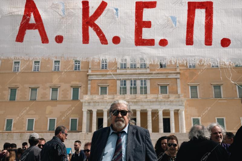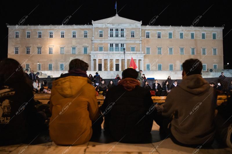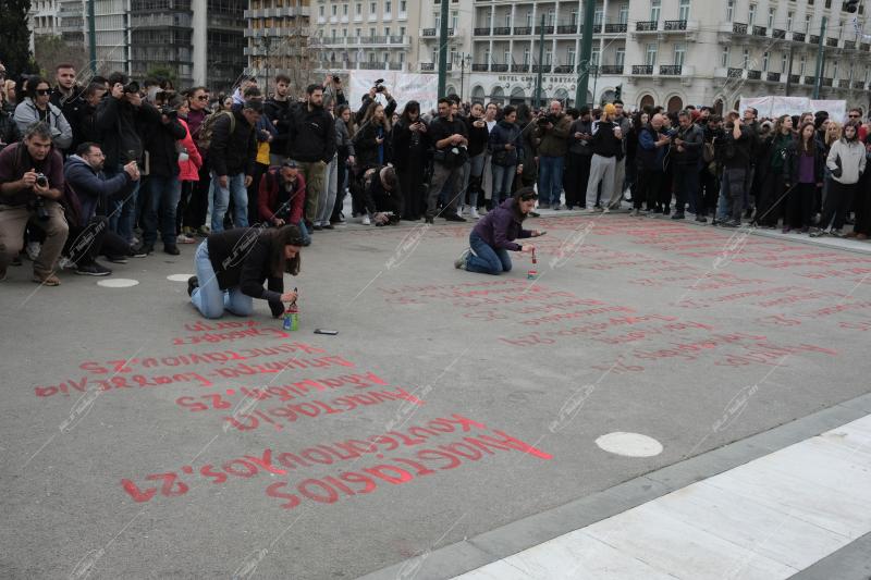 Συγκέντρωση της ΚΝΕ στην πλατεία Συντάγματος για το δυστύχημα στα Τέμπη