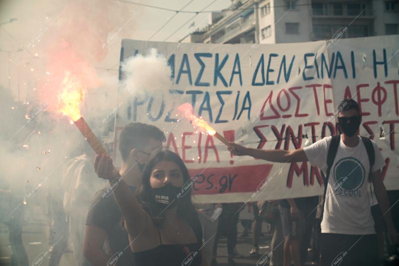 Mαθητική πορεία για τα έκτακτα μέτρα κατά του covid 19 στα σχολεία