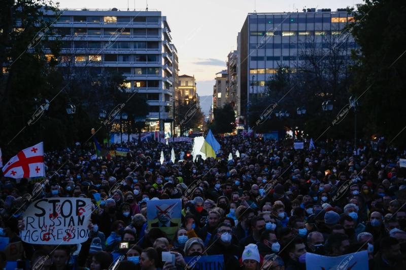 Συγκέντρωση Ουκρανών στην πλατεία Συντάγματος για τον πόλεμο με τη Ρωσία / Ukrainians demonstrate in